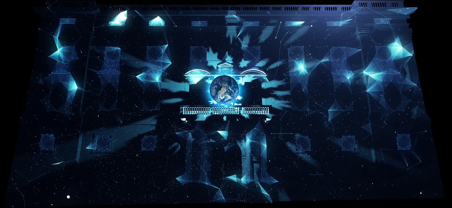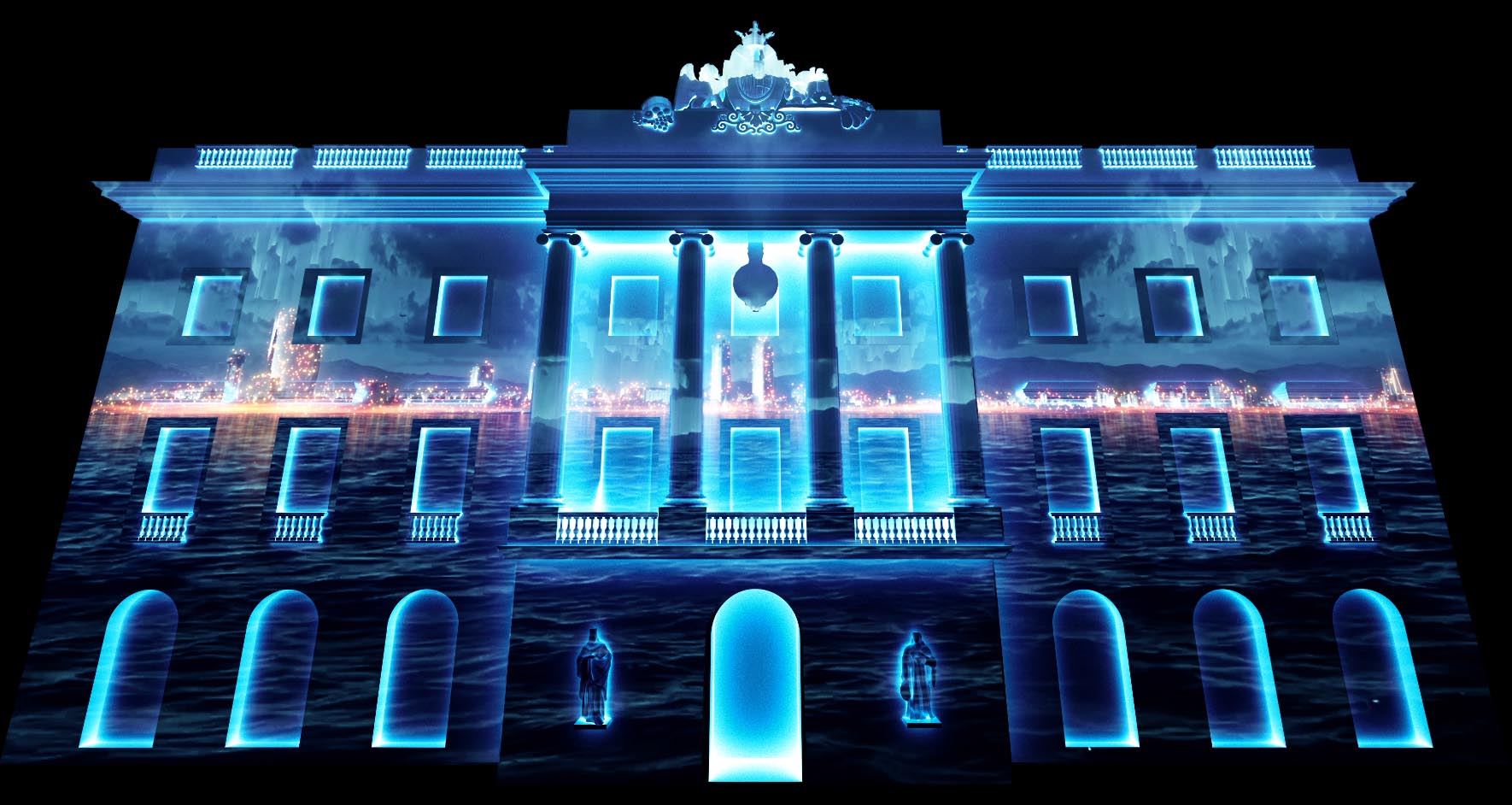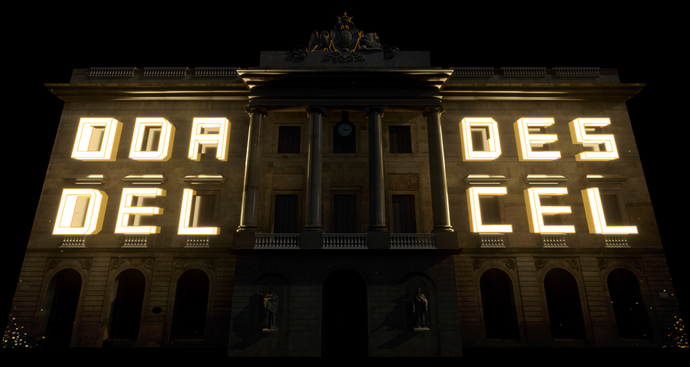 “Oda des del cel” es un proyecto de vídeo mapping, acompañado de efectos de iluminación, que se proyectó de manera simultánea en las fachadas del Ayuntamiento de Barcelona y el edificio de la Generalitat con motivo de la Fiesta Mayor de la Mercè.